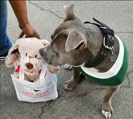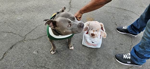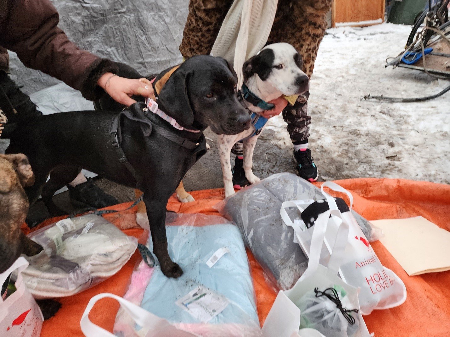 Love Bags are tax-deductible, cost $30.00 each, and include some of the following; dog and cat food, snacks, pet toys, harnesses for walking, bowls, blankets, socks, hats, raincoats, and leash leads.