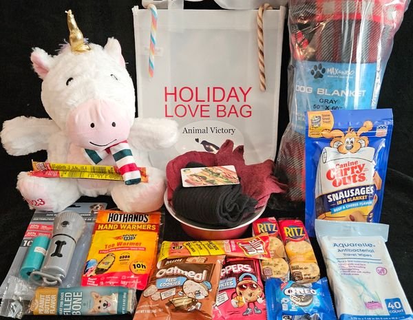 For the fourth consecutive year, Animal Victory is providing Holiday “Love Bags”💖 for the dogs and cats of the homeless.💕