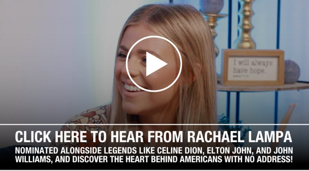 We are thrilled to announce that our song “Pain Has a Purpose,” the powerful and emotional theme song from our documentary Americans With No Address, sung by KLOVE Singer of the Year Rachael Lampa, has been nominated for Best Song in a Documentary by the Hollywood Music in Media Award (HMMA)