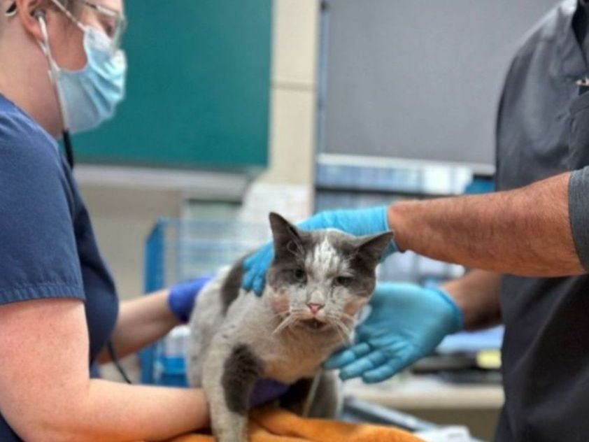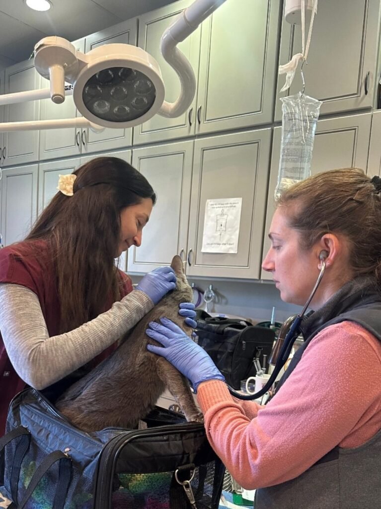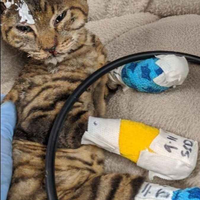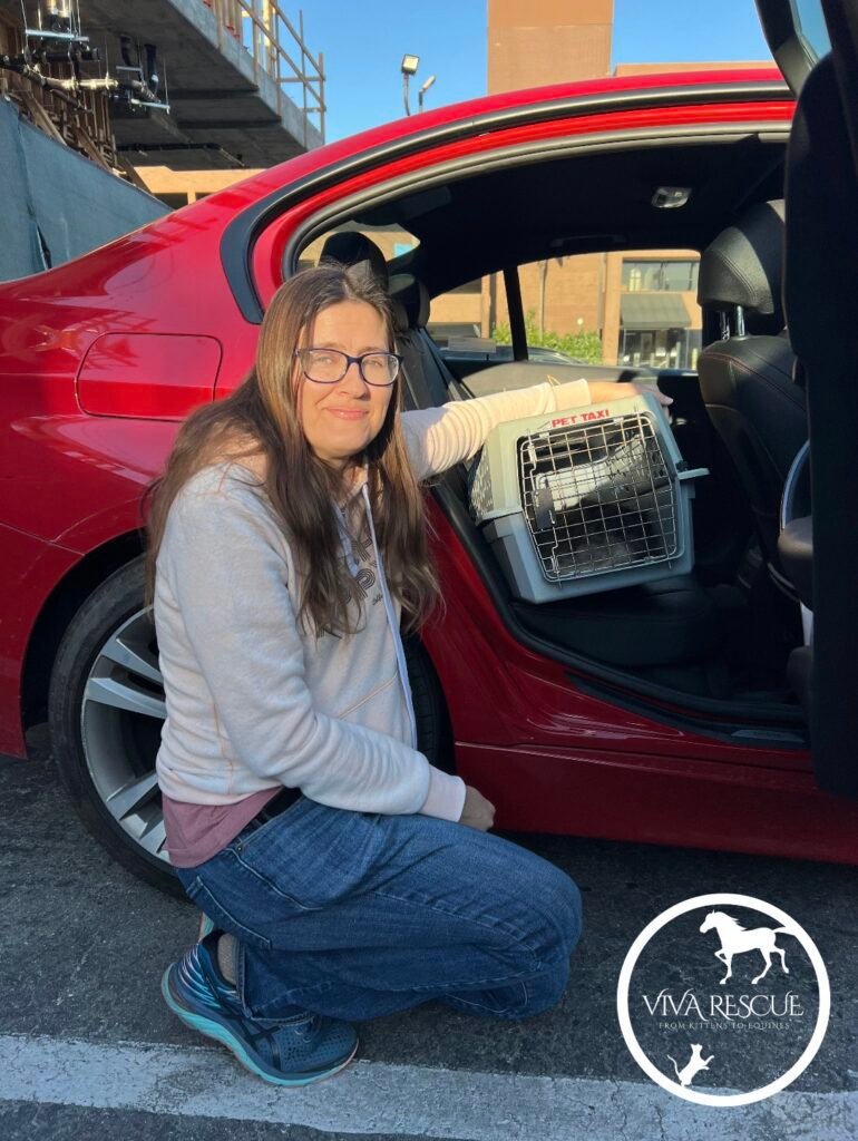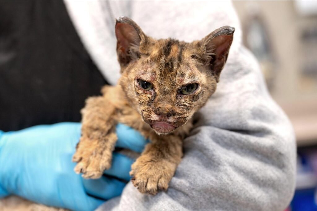 Our friends at Viva Rescue got a call about a cat that the family couldn’t reach, right in the middle of the path of fire. They sent two volunteers up throughout the day, but even on a fire road, they were unable to safely make it through. On January 10, around midnight, they decided to make the trip themselves. They were able to get past fire lines no one else could get through, thanks to assistance from PD and FD. Hollywood was one of the cats they saved. Blocks and blocks were reduced to ash, but her house was untouched by flames. It was a true miracle. They cried when they found her alive. She had not eaten or drunk water in three days. There was thick smoke in the air, and she was immediately taken for triage. She is okay, has some smoke inhalation but should recover well. Her family is evacuated where they can’t have animals, so another team took her back to the sanctuary where she’ll recover and stay until she’s ready to go home.