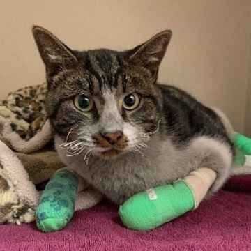 4 month old kitten found wandering and treated by Pasadena Humane Society.