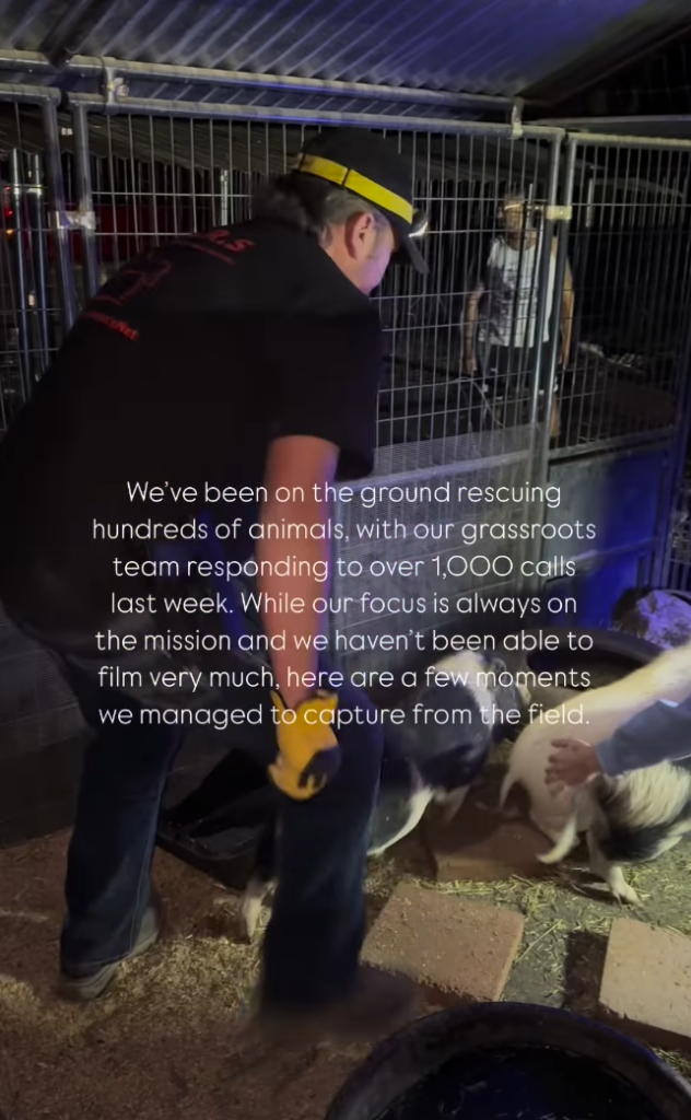 Our dedicated friends in Menifee, California, are working tirelessly around the clock, conducting search and rescue missions when it’s safe, as well as carrying out preventative evacuations for animals in need. This includes farm animals, horses, domestics, and exotics. Thanks to their amazing team, over 300 animals have already been saved, and they continue to check more addresses every hour.