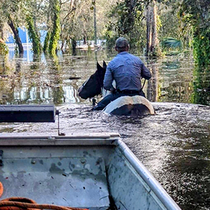 “We managed to get a trailer load of feed, medical supplies, and fencing to pass out to those in need in Venice! Some even had to be delivered by boat!”