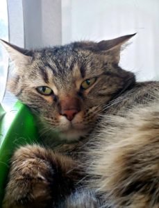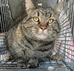The tabby cat pictures above are Skye. She was a barn kitty that was found in the flattened area of the burn zone. She is currently staying at the Harmony Vet clinic in their little private cat ward. She has trauma and is not trusting people but is making progress!