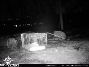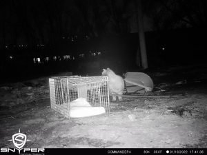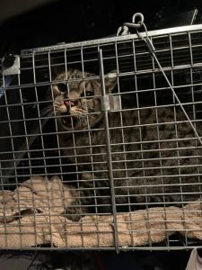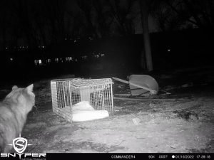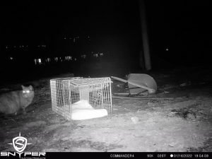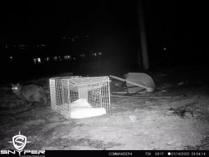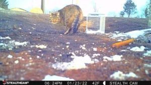 “Here is a sequence from a trail cam…I found this big boy on day two. Decided to take a shot at him on my last night in CO. In short, he came to the trap on two occasions during the night but would not commit. As I drove into the burn zone to do some surveillance later in the evening I found him about 50 yards from the trap location. He was in stalk mode as I watched him through my thermal scope. As he was low to the ground near a brush pile I saw a mouse about three feet from him and he was zoned in on it…big boy made the pounce, sealed the deal, and ate the mouse right in front of me. It was then I realized he was going to be ok… a strong hunter, healthy and thick coat, solidly built, and with no apparent injuries. We saw about ten cats total on our time…using an aerial thermal imaging device as well as a ground-level handheld thermal imaging scope. As I gathered intel on the situation we came to understand that the cast majority of the missing felines were known to be INSIDE their homes when they were burned to nothing. Based on my experience and educated guess, I opine that the odds of a firecat making it out of a burning home is about 5%. The weather was alternately very frigid and sorta mild during my time on the ground. At times we had snow flurries, 25 mph winds, and sub-freezing temperatures. After consulting with the local rescue group, I analyzed their work and offered some guidance on best practices for finding and rescuing firecats, and ultimately left that effort in good hands. The highlight and best purpose for my trip to CO was to present my firecat search and rescue workshop.”